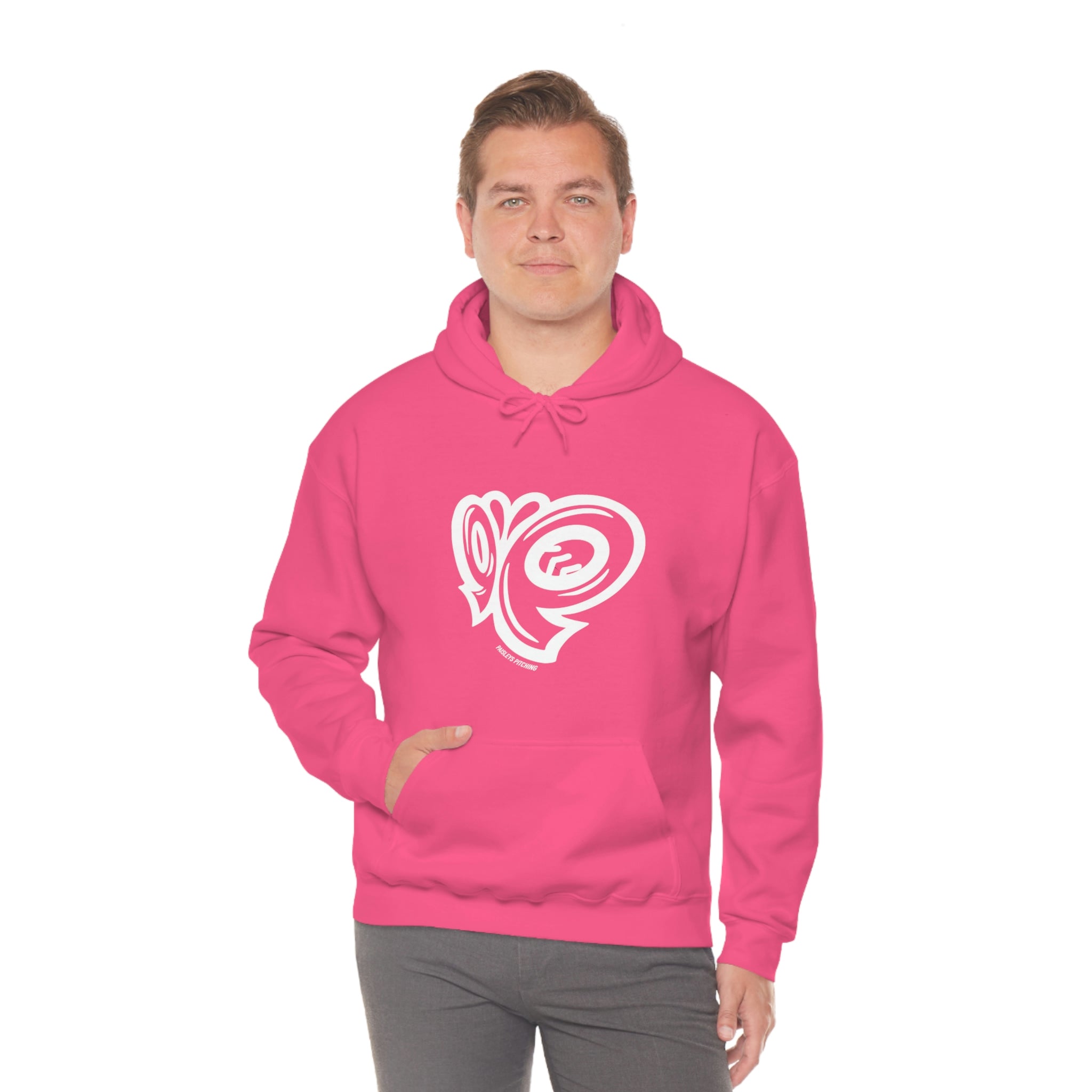 This unisex heavy blend hooded sweatshirt is relaxation itself. Made with a thick blend of cotton and polyester, it feels plush, soft and warm, a perfect choice for any cold day. In the front, the spacious kangaroo pocket adds daily practicality while the hood's drawstring is the same color as the base sweater for extra style points.